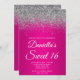 Convites Sparkly Silver Glitter Hot Pink Gradient Sweet 16
