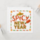 Celebrate the New Year with this fun festive holiday invitation. Delight friends and co-workers with this whimsical design of flame emojis with red and green chili peppers that spell out "Spicy New Year", a sombrero on top and hot sauce pouring out over the year. Your friends will get a kick out of these invitations to join you for some fun ringing in the New Year. Matching plates, napkins, cups, keychains, stickers, magnets and coasters available as well.