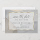 Tons da Terra Russa Moderna Salve a data - a aquarela espalha uma textura granítica falsa em tons neutros de bronzeado, bege, farinha de aveia e cinza em cogumelo - 5 formas de misturar e combinar - destacada com um derrame de pincel de ouro e uma camada de ouro branco, para uma atração natural pela terra com um belo desenho abstrato moderno, As palavras "salvar a data" são escritas elegantes caligrafia - Fácil de personalizar o modelo de detalhes - Criado para corresponder à nossa fantástica coleção de casamentos granitos e elegantes