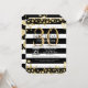 As listras modernas, preto e branco elegantes com pintura do ouro do falso splatters, convites de festas de aniversários. Design muito clássico e sofisticado para a senhora elegante do aniversário. Personalize com seus próprios mensagem e monograma na parte traseira. Todo o design do impressão da foto
