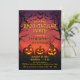 Libere uma celebração "Spooktacular" com este convite de aniversário de Halloween. A design apresenta um céu dramático no crepúsculo em laranja e roxo feroz, com morcegos silenciados a inundar-se. Árvores negras, negras armam o cartão, levando seus olhos para três clássicos, grisalhos que ancoram a cena com alegria festiva. Este é o convite perfeito para dar um tom divertido e assustador para o seu evento especial.