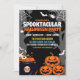 Lindo diseño de fiesta de Halloween con la frase divertida "SPOOKTACULAR HALLOWEEN PARTY" este diseño cuenta con colores naranjas, grices y negros con ilustraciones tipicas de Halloween, el diseño cuenta con todos los datos a personalizar para tu fiesta de Halloween.