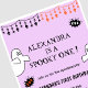 Spooktacular Spooky one Halloween primeiro aniversario Invitation em rosa e laranja : Este primeiro aniversario de Halloween convida em roxo, laranja e preto com o fantasma fofo e os monstrinhos são para crianças (menina) (ex: Alexandre é assustador. Junte-se a nós para o primeiro aniversário de Alexandre XX de outubro XXX ) é excelente de aniversário assustador. Você pode personalizar estes convites de festa de aniversário feminina de halloween com todas as suas informações. Perfeito para convites de primeiro aniversario de halloween, convites de primeiro aniversário de halloween, festa de primeiro aniversario, primeiro aniversário de halloween, festa de aniversário de menina, aniversário de outubro, primeiro aniversario de menina... HALLOWEEN THEME (convite para o primeiro aniversário de halloween, fantasma fofo, monstro, festa de halloween roxa, primeiro aniversario de halloween, assustador, festa de fantasma de halloween, para crianças, menina)