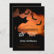 Silhueta de gato assustador em um céu laranja noturno debaixo de uma árvore entre os morcegos assustadores Convite de aniversário de Halloween. Foto cortesia de Saso Tusar via Unsplash.