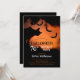 Silhueta de gato assustador em um céu laranja noturno debaixo de uma árvore entre os morcegos assustadores Convite de aniversário de Halloween. Foto cortesia de Saso Tusar via Unsplash.