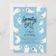 Cartão de convite de festas de primeiro aniversario de garoto, tema bonito de halloween, com ilustração de fantasmas bonitos e estrelas em fundo azul. O texto diz "XX é um Spooky One."