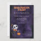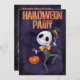 Deliciosamente assustador, assustador e esqueleto de dança fofo para receber seus convidados a uma festa de fantasia de Halloween. Cores de outubro: laranja, roxo e preto. Estilo tipográfico moderno com os detalhes do seu próprio partido. Perfeito para truque ou tratamento de todas as idades.