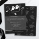 Celebre o Halloween em estilo com este convite de design de fantasma preto e branco. A frente apresenta um título ousado lendo "Spooky Times Ahead" com "O" em forma de fantasma, combinado com uma mensagem de convite caloroso para seus amigos e família. As costas mostram um padrão sutil de fantasmas levemente desbotados sobre um fundo preto, adicionando profundidade e um toque de encanto festivo. Perfeito para adultos que desfrutam de uma reunião de Halloween mínima, mas divertida.