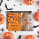 Este belo "assustador" convite fotográfico de 1rua/primeiro aniversário de um menino de halloween apresenta um fundo laranja com as terras do Dia das Bruxas, incluindo um gato preto, morcego, fantasma, abóbora, doce, chapéu de bruxa e caldeirão. O verso apresenta um fundo de cinza com padrões de aranha. Personalize-o para as suas necessidades. Você pode encontrar produtos correspondentes na minha loja.