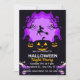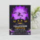 Invite your guests to a night of spooky fun with our enchanting Halloween Night Party Invitation! This captivating design sets the perfect eerie tone, featuring a striking silhouette of a witch flying across a layered, deep purple night sky. Framed by gnarled, spooky trees and glowing jack-o'-lanterns, this invitation captures the magical essence of Halloween. Bubbling cauldrons and graveyard tombstones complete the haunted scene. Easily personalize all the essential details for your spooky celebration, including the date, time, location, and RSVP information. Ideal for an adult costume party, a teen Halloween bash, or any haunted gathering.