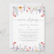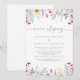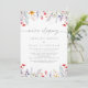 This spring colorful wildflower elopement reception card is perfect for a modern post elopement party. The design features an elegant calligraphy script, which reads wedding in muted gray, hand-painted watercolor purple, violet, burgundy, red, pink, blush, yellow wildflowers, green leaves assembled into a seamless floral patterns.