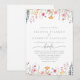 This spring colorful wildflower Spanish wedding invitation is perfect for a rustic wedding. The design features an elegant calligraphy script, which reads wedding in muted gray, hand-painted watercolor purple, violet, burgundy, red, pink, blush, yellow wildflowers, green leaves assembled into a seamless floral patterns.