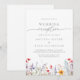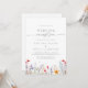 This spring colorful wildflower wedding reception invitation is perfect for a modern post elopement party. The design features an elegant calligraphy script, which reads wedding in muted gray, hand-painted watercolor purple, violet, burgundy, red, pink, blush, yellow wildflowers, green leaves assembled into a seamless floral patterns.