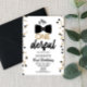 Este é um convite do Sr. ONEmagnifico Primeiro primeiro aniversario do partido, com um design preto branco e ouro brilhante. Uma gravata de arco branca-arco--azul-reluzente