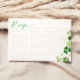 Recipe Card for Bridal Shower invitation insert with hand drawn watercolor shamrocks in green. This design is perfect for a St. Patrick's Day themed Bridal Shower.