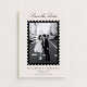 This modern stamp-style Save the Date card features a single photo framed with a bold, scalloped edge inspired by classic postage stamps. The soft ivory background paired with elegant typography creates a refined yet contemporary look that many women love for stylish, photo-focused wedding stationery.