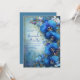 Create a serene and sophisticated atmosphere with this breathtaking botanical design. The artwork highlights a magnificent white blossom with soft pearlescent petals, centered in a lush arrangement of teal, sage, and seafoam green foliage. Delicate gold glitter twigs and subtle geometric circular patterns peek through the leaves, adding a layer of intricate luxury to the airy composition. The design is set against a clean, off-white background, utilizing negative space to make the corner floral arrangement truly pop. This calming and graceful aesthetic is an impeccable choice for a seaside wedding, a spring garden brunch, or a sophisticated engagement party. You might also select this lovely style for a celebration of life service, a baptism, or a milestone anniversary dinner. This peaceful floral border is also perfectly suitable for yoga studio membership cards, luxury spa service menus, or holistic wellness retreat brochures. This wedding invitation is a premier choice for a formal evening gala, a luxury winter solstice wedding, or a sophisticated "Midnight Garden" ceremony. The deep sapphire tones and shimmering gold accents make it a perfect match for upscale venues like a historic grand hotel, a modern city penthouse, or a candlelit manor house. It is ideal for couples seeking a high-contrast color palette of royal blue and gold, offering an artistic floral look that feels opulent for a black-tie event or an enchanted night-themed reception.