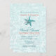 Convite de chá de praia para o casal. Starfish e design de água com texto personalizado em turquesa e laranja de coral. Os nomes do tipo casal e partido destacam-se contra um fundo de água brilhante e límpida. Inclua o tema do chá ou da parte ou altere o texto conforme preferir. A forma do suporte moderno é opcional.