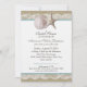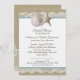 Starfish e dólar sobre renda branca e design de burlap, acentuados em azul-céu. Bonito e elegante para qualquer evento temático na praia.