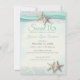 Fita de aqua e estrela-do-mar, praia romântica, doce convite de aniversário dezesseis. A dupla cor d'água inspirada no design no com texto completamente editável na placa de tamanho 4,5" x 6,25".