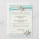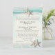Fita de aqua e estrelas-do-mar com rendas brancas românticas e praia aquosa, convite temático para o casamento. Um destino inspirado na praia, adorável, pode ser personalizado como preferível.