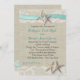 Starfish e aqua destino da praia convite para o seu casamento no mar. Fundo do estilo da costa da meteorologia em tons de areia quente.