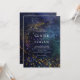 Este convite de casamento chic e moderno apresenta o fundo celestial da noite estelar com estrelas de ouro falsas/falsas e uma nebulosa. Personalize-o para as suas necessidades. Você pode encontrar produtos correspondentes na minha loja.