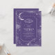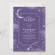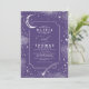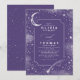 Este convite romântico de casamento apresenta um belo tema do céu noturno roxo, estabelecendo a cena para uma celebração mágica. Decorada com uma lua lua de prata metálica falsa, uma estrela em queda brilhante, e constelações distantes, cria uma vibração pacífica e mística. Escolher este convite dá a seus convidados uma recepção memorável e transforma-o em um tesouro. É o começo perfeito para um dia cheio de maravilha, elegância, e um amor tão ilimitado quanto o cosmos.