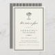 STATELY Frame, let's raise a glass event invitation. Template features, cocktail illustration, classic black typography and stripe pattern backing with soft ecru color backgrounds.