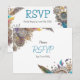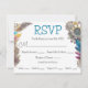 RSVP de Casamento com Temas bonito do Steampunk. Bonito engrenagens metálicas, penas e flores de turquesa, escondidas em engrenagens e vedações metálicas.