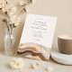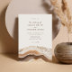 Convite de casamento minimalista com fundo de mármore agado e design gráfico simples.
