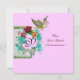 Design floral elegante, engraçado, com estilo de vintage, com um bebê e cegonha voadora entre as belas flores rosa, rosas vermelhas, azul-lacrimogêneo de Búlgaro Lumini (c).