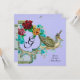 Design floral elegante, engraçado, com estilo de vintage, com um bebê e cegonha voadora entre as belas flores rosa, rosas vermelhas, azul-lacrimogêneo de Búlgaro Lumini (c).