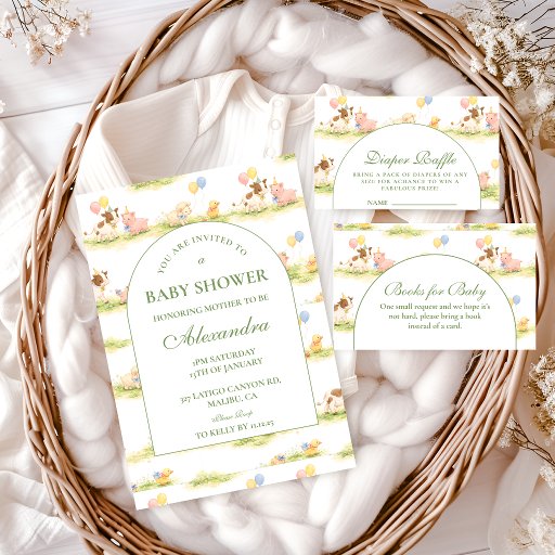 Convites Storybook Farm Animals Pastel Baby Shower