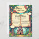 This elegant fairytale-style birthday invitation is perfect for a modern birthday. The retro design features a vintage enchanted forest, a castle illustration, and black calligraphy on a storybook-themed background.
