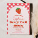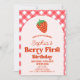 Este é um Convite de festas de primeiro aniversario Vermelho Rosa Primeiro Berry Strawberry!