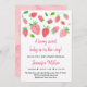 Este adorável convite apresenta a cor d'água pintada manualmente morangos e verde.
