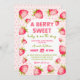 Bonita, aquarela, chá de bebê morango doce de boho. Todos os elementos são escolhidos para trazer boas vibrações, com uma mistura de cores de verão: rosa-quente, rosa-pálido e verde-grama. O contexto charmoso com pontos, juntamente com a escrita manual moderna e elegante escrita, torna este design perfeito para as celebrações do chá de fraldas de Verão.