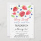 Este adorável convite mostra minha mão pintada de aquarelas morangos e mirtilos.