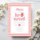 Celebrate your little sweet one's second birthday with our darling Strawberry Two Sweet 2nd Birthday Party Invitation! This sweet design showcases a cute strawberry wearing a coquette pink bow on a charming red and white gingham background. Perfect for your little girl's 2nd birthday celebration. Order now and get ready to spread the sweetness with this charming and unique invitation! Matching party accessories available.