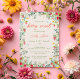 Incêndio na doçura do primavera com nosso charmoso design de chá de fraldas de flor de aquarela de morango, onde florescentes delicados entrelaçam com um verde lúcido. As matizes vibrantes dos morangos e das folhas verdes criam uma atmosfera balbuciosa, evocando a alegria e a antecipação de novos começos. Junte-se a nós para comemorar a mamãe a ser e sua pequena chegada doce de morango!