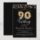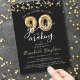 Convite de aniversário moderno e festivo com o título Você é Convidado para uma festa 90 anos NO FAZER em tipografia de script de caligrafia e números falsos metálicos de balões de ouro e galerias de ouro e confetes e luzes brancas na sua escolha de cor de fundo (mostradas a preto). ASSISTÊNCIA: Para obter ajuda com a modificação ou personalização do design, alteração de cor, transferência do design para outro produto ou se você quiser coordenar itens, entre em contato com o designer ANTES de fazer o pedido via Chat Zazzle ou email makeitaboutyoustore@gmail.com.