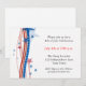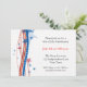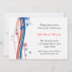 Um convite festivo com estrelas patrióticas vermelhas, brancas e azuis e faixa de bandeira em um fundo estelar.