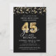 Reuna seu segundo grau ou universitário para sua Reunião de Classe de 45 Anos com esses convites personalizados de reunião de classes de cores com grandes números falsos de balões metálicos de ouro, streams de ouro e confetti e luzes brancas na sua escolha de cor de fundo, você pode mudar para sua cor de fundo ou cor de tema de festa (mostrada em preto). ASSISTÊNCIA: Para obter ajuda sobre modificação ou personalização do design, outro número de balão para outro ano, mudança de cor, transferência do design para outro produto ou se você quiser coordenar itens, entre em contato com o designer ANTES DE ENCOMENDAR, através da guia MENSAGEM de Bate-papo Zazzle abaixo ou envie um email para makeitaboutyoustore@gmail.com.
