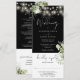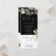 Um convite de casamento preto e branco, tudo em um, com luzes bonito de cordas, verde floral botânico rústico e tipografia elegante. O convite inclui um cartão RSVP que pode ser interrompido e detalhes de informações de convidado. Projetado por Thisnotme©