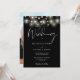 This elegant script black and white wedding invitation, featuring pretty string lights, can be personalized with your information in chic typography with your special photo on the reverse. Designed by Thisisnotme©