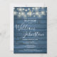 Convites String Lights Blue Rustic Wood Baptism Christening