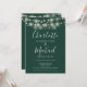 Com luzes bonito de cordas e nomes de estilo de assinatura, este elegante convite de casamento verde esmeralda pode ser personalizado com todas as suas informações especiais sobre o dia do casamento, incluindo seu RSVP, acomodações e detalhes adicionais. Projetado por Thisnotme©
