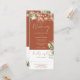 Um convite para o casamento "tudo em um" em terracotta com luzes bonito de cordas, verde floral botânico rústico e tipografia elegante. O convite inclui um cartão RSVP que pode ser interrompido e detalhes de informações de convidado. Projetado por Thisnotme©