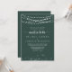 Esta corda ilumina o convite de casamento da nuestra verde é perfeito para um casamento clássico. A design apresenta belas luzes de cordas pintadas manualmente com estrelas esplêndidas em um fundo verde.
